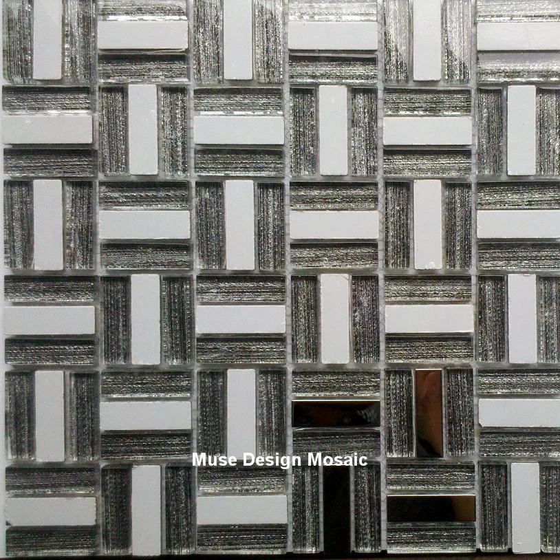 Retro Silver Metal Hand Painted Grey Glass Mosaic Tile Kitchen