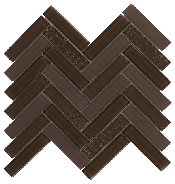 Brown Mosaic Tile Textured Matt Herringbone Backsplash