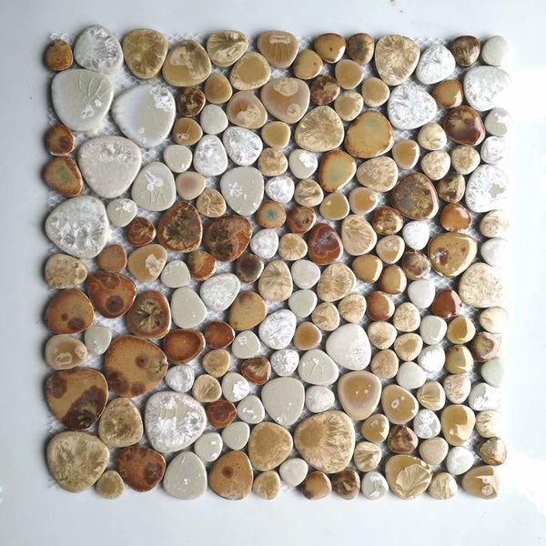 Beige Brown White Pebble Porcelain Kitchen Backsplash Tile Ppmts06