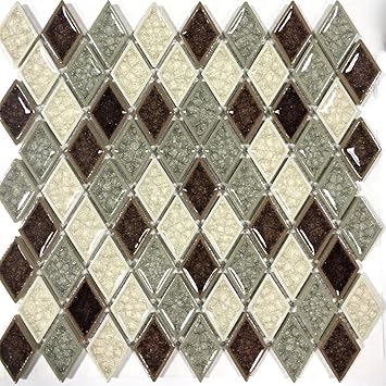 Diamond Crackled Finish Glass Multi Color Mosaic Tile Backsplash