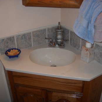 Custom Cultured Marble Vanity Top With Tile Backsplash To Match