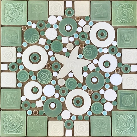 Shells Dots Patina Parchment Handmade Ceramic Tile Etsy