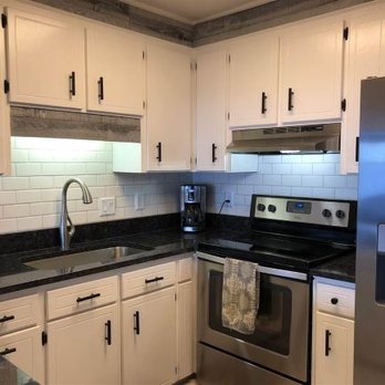 Kitchen Room With Steel Appliances White Tile Back Splash Trim