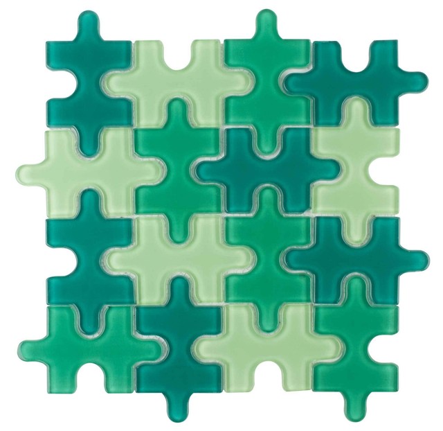 Modern Mosaic Green Glossy Glass Backsplash Tile Kitchen Bathroom