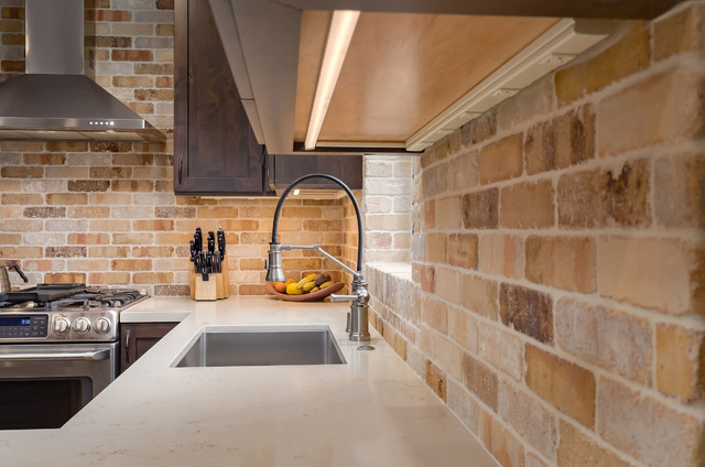 Natural Stone Backsplash In Contemporary Kitchen Farmhouse