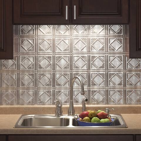 Fasade Monaco 18 In X 24 In Crosshatch Silver Vinyl Decorative