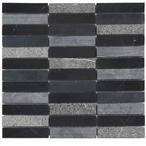 Black Marquina Marble Mosaic Tile Texture Blend Stacked Pattern