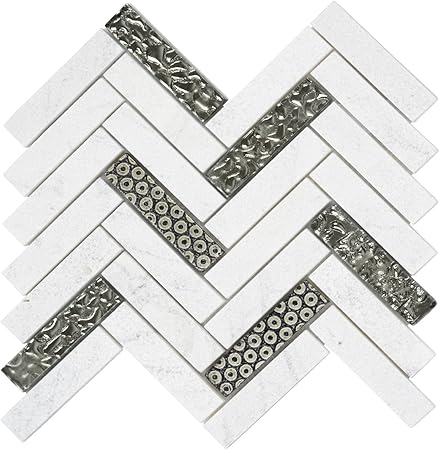 Metal Metallic Aluminium Herringbone Pattern Mosaic Tile Kitchen