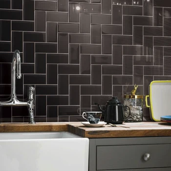 Glass Tile 3 4 X 1 1 2 Inch Black Iridescent Glass Subway Tile