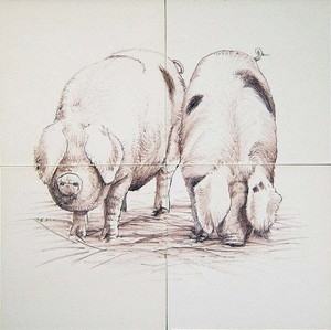 Pigs Hand Painted Kitchen Tile Mural Backsplash Made To Order