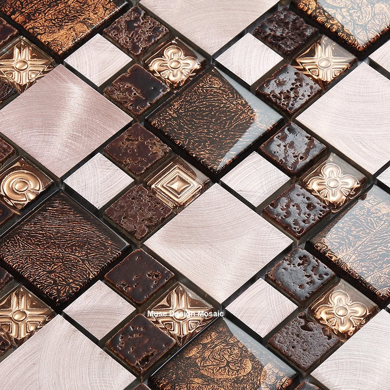 China Aluminum Mosaic Tiles Matel Glass Tiles Decoration Kitchen