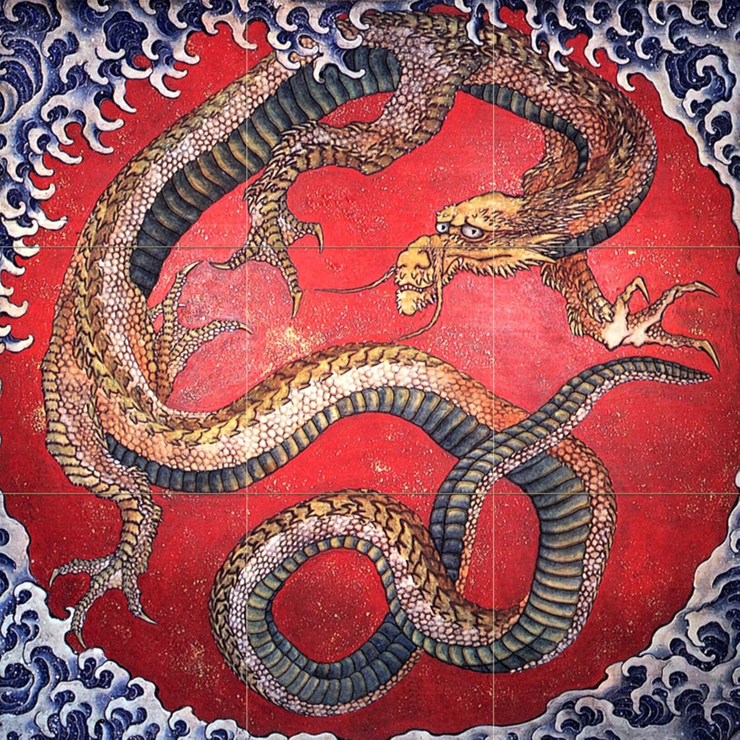 Japan Golden Dragon By Hokusai Tile Mural Kitchen Bathroom Wall