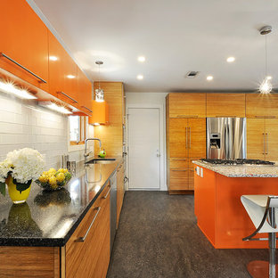 75 Beautiful Kitchen With Orange Cabinets And Glass Tile