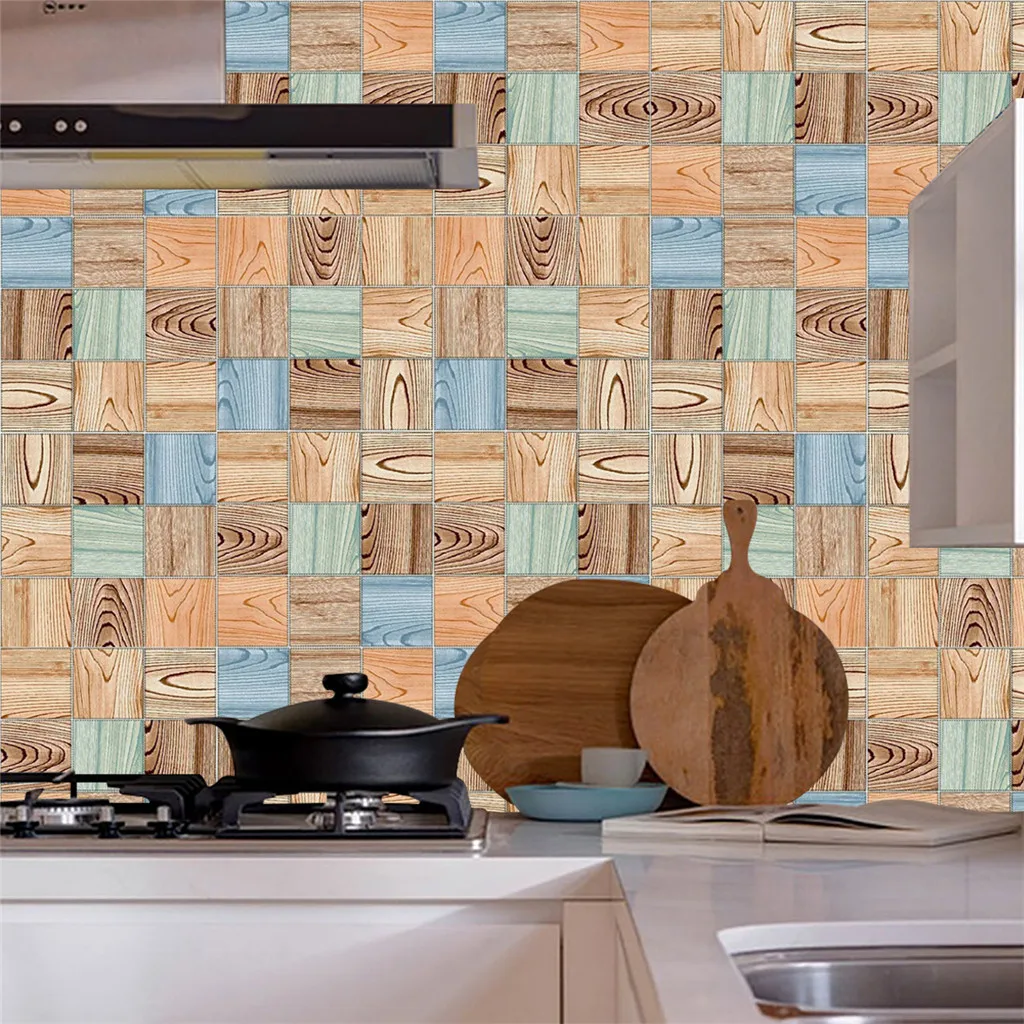 Wood Pattern Mosaic Tile Wall Decal Sticker Easy To Diy Backsplash
