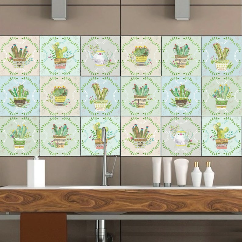 Cactus Home Decor Kitchen Backsplash Tile Stickers Set Of 9 Cactus