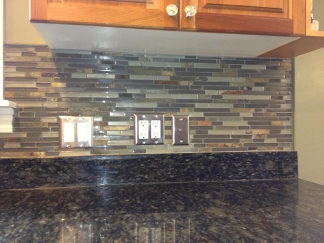 Kitchen Backsplashglass Tile And Slate Mix Kitchen Backsplash