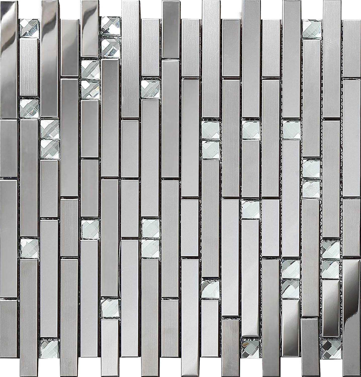 Silver Stainless Steel And Glass Backsplash Tile With Rhinestones