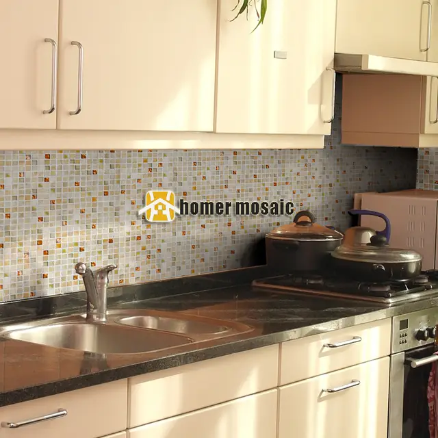 Blue Glass Stone Mosaic Wall Tiles Gray Marble Tile Kitchen