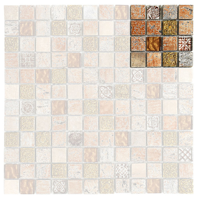 Orange And Gold Travertine Glass Mosaic Backsplash Tile Sample