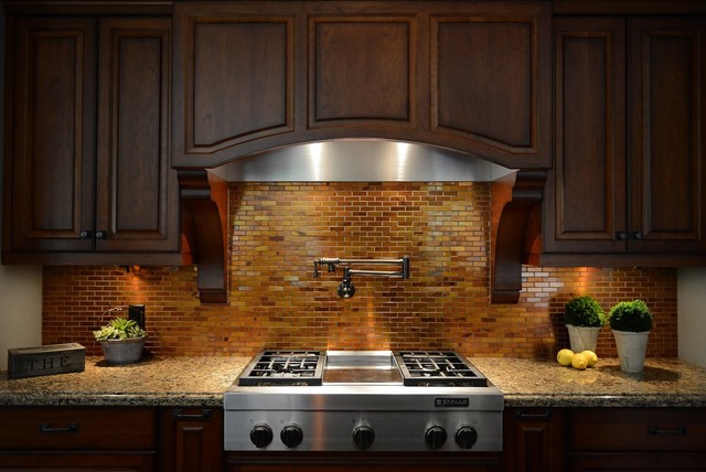 Kitchen Backsplash Copper Tiles Pot Filler Traditional