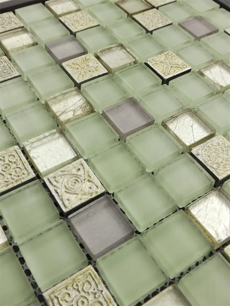 Home Improvement Light Green Glass Mosaic Tiles Glass Bathroom