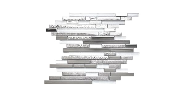 Modern Random Mixed Tile With White Glass And Textured Metal