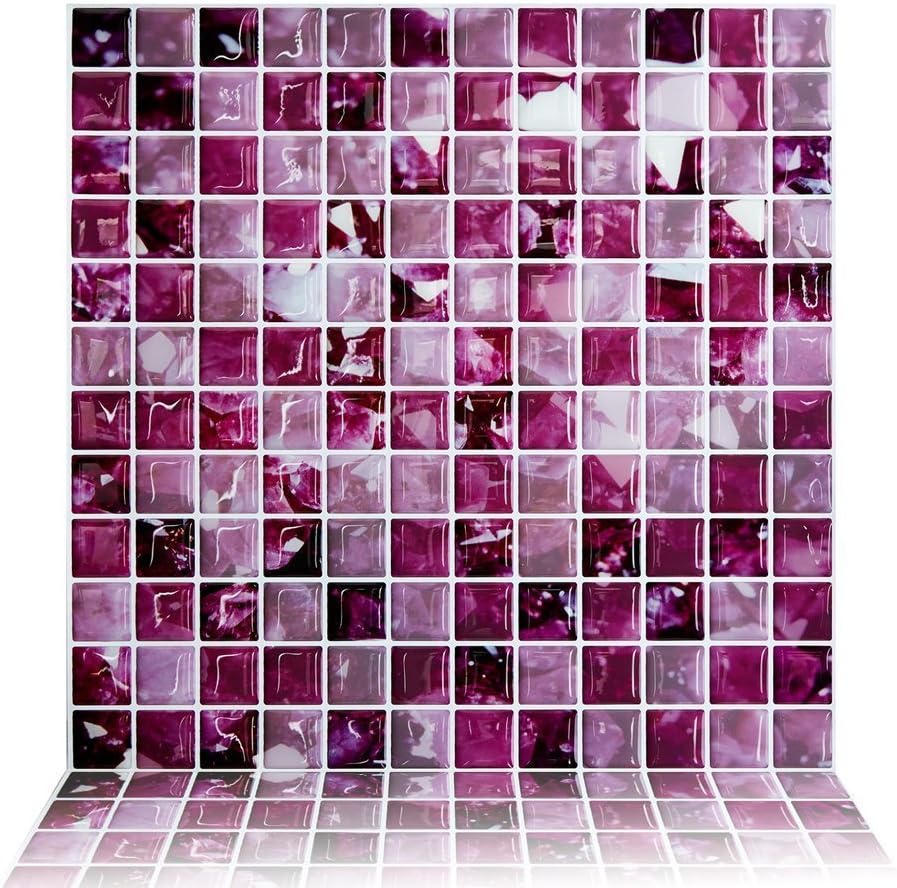 Looking for a pink or purple tile to complete your space. This is definitely the best blog post with complete details and ideas for kitchen backsplash tiles. Yoillione 3d mosaic tile sticker removable wallpaper tile purple 3d self adhesive wall tiles bathroom wall tiles for kitchen backsplash purple pvc square decorative vinyl tile decals 4 sheets.