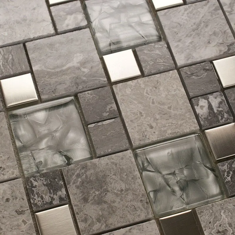 Mirror Stainless Steel Tile Metal Mixed Stone Bathroom Tiles Glass