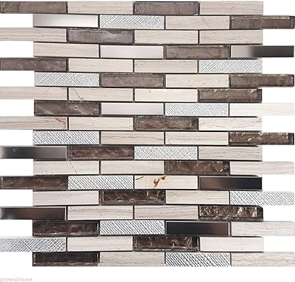 Amazon Com Beige Brown Rectangle Brick Glass Stone Metal Mosaic