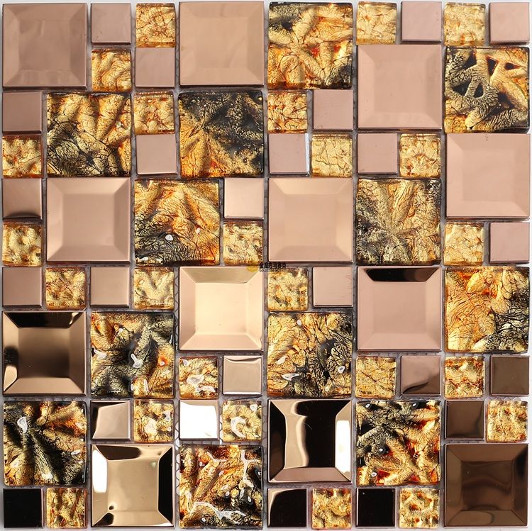 Rose Gold Stainless Steel Tile Golden Crystal Glass Fifyh Com