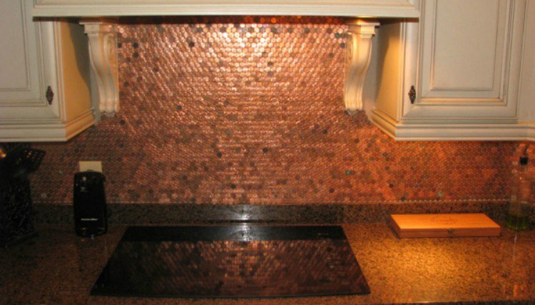 Amazing Diy Penny Backsplash This Use Of Copper Is Simply