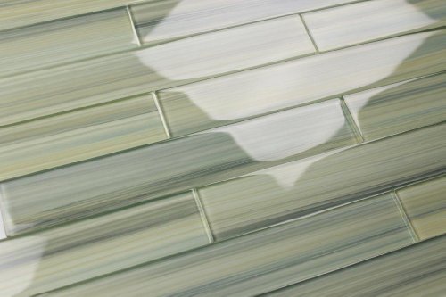 Light Green Blue Gray 2x12 Wintermoss Subway Glass Tile For