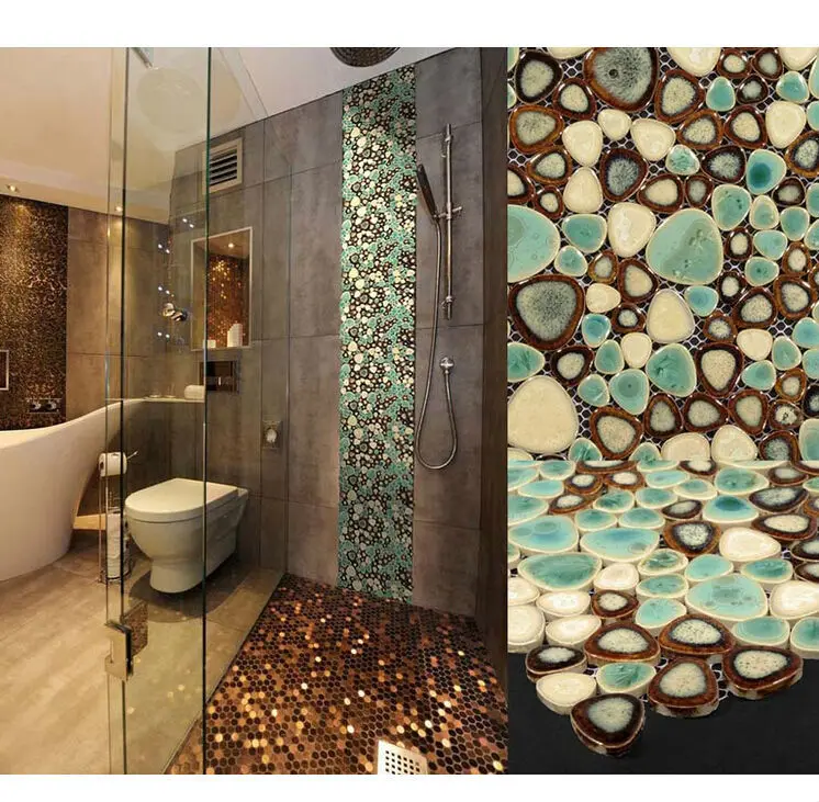 Gray Porcelain Tile Pebble Mosaic Kitchen Backsplash Tile Bathroom
