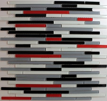 Red White Black Grey Glass Mosaic Backsplash Tile 1 Sheet Glass
