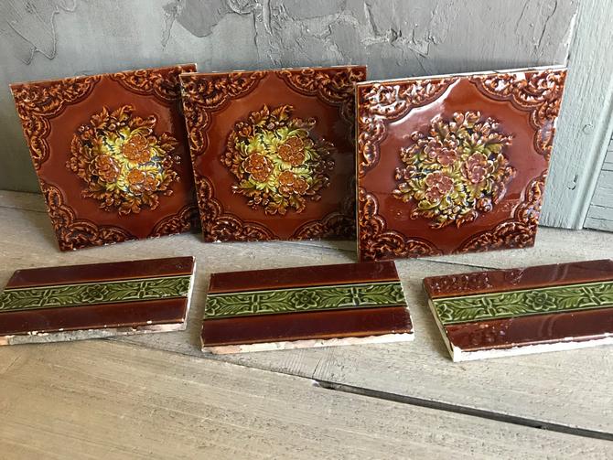 19th C English Victorian Fireplace Tiles Set Of 7 Made In