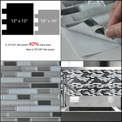 12 X 12 Peel And Stick Tile Kitchen Backsplash Sticker Gray