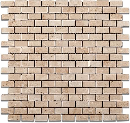 Ivory Light Travertine Mini Brick Mosaic Tile Tumbled 6 X 6