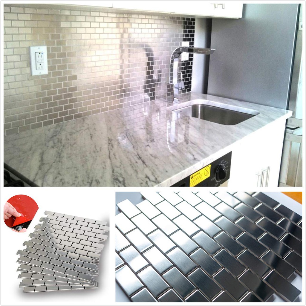 5 Tiles Stainless Steel Peel And Stick Tile Backsplash For Kitchen