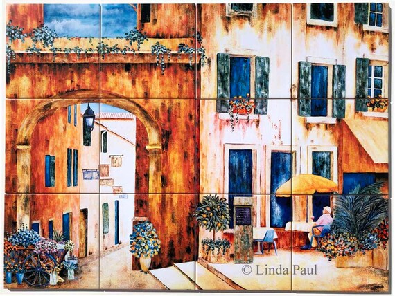 French Kitchen Tile Mural Backsplash Of Provence Town Cafe Etsy