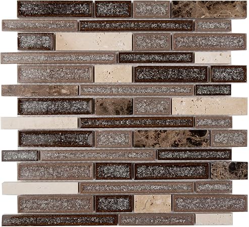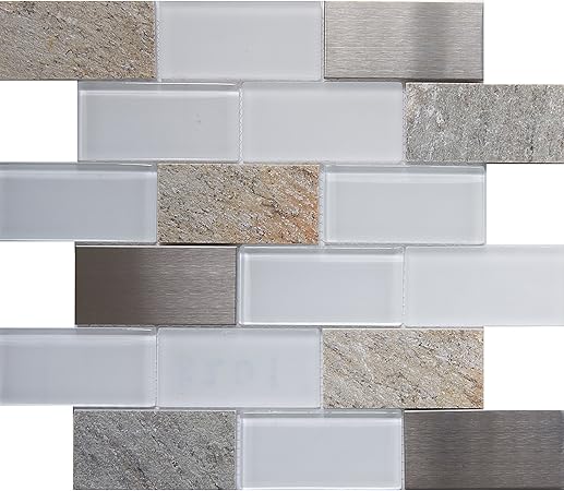Amazon Com Beige Brown Rectangle Brick Glass Stone Metal Mosaic