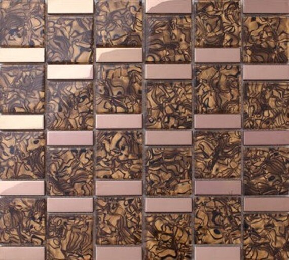 Glass Metal Gray Copper Mosaic Backsplash Tile Backsplash Com