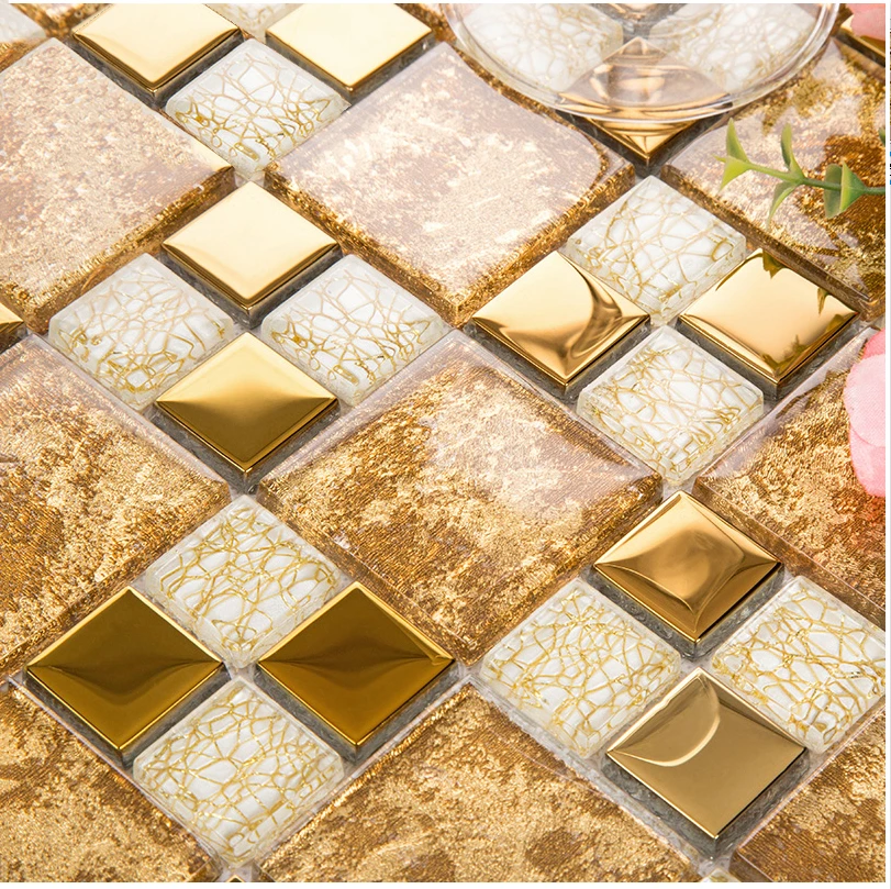 Imitate Marble Electropaltedgold Line Glass Mosaic Tiles Diy