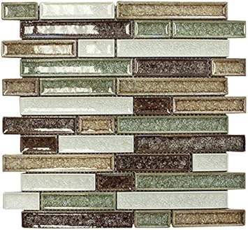 Self Adhesive Mosaic Tile Mixed Brown Marble Oblong 3d Wall