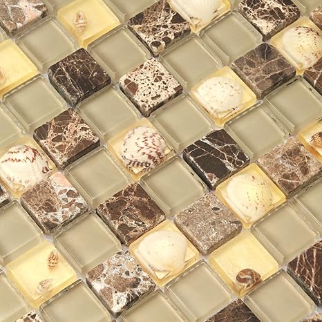 Brown Stone Tile Shell Mosaic Tiles Natrual Marble Backsplash