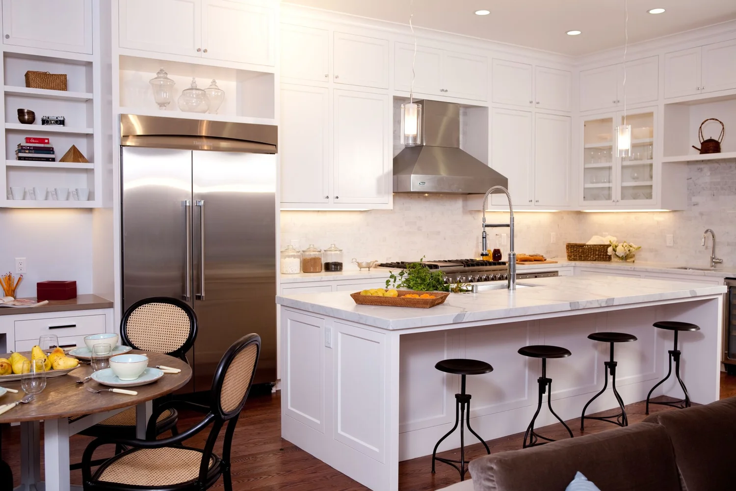 Gourmet Kitchen Features White Shaker Cabinets With Marble