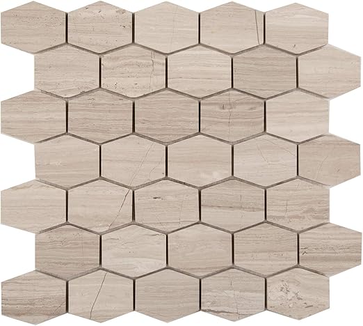 White Oak Marble Mosaic Tile Wommlhex H 2 1 2 X2 Hexagon 12