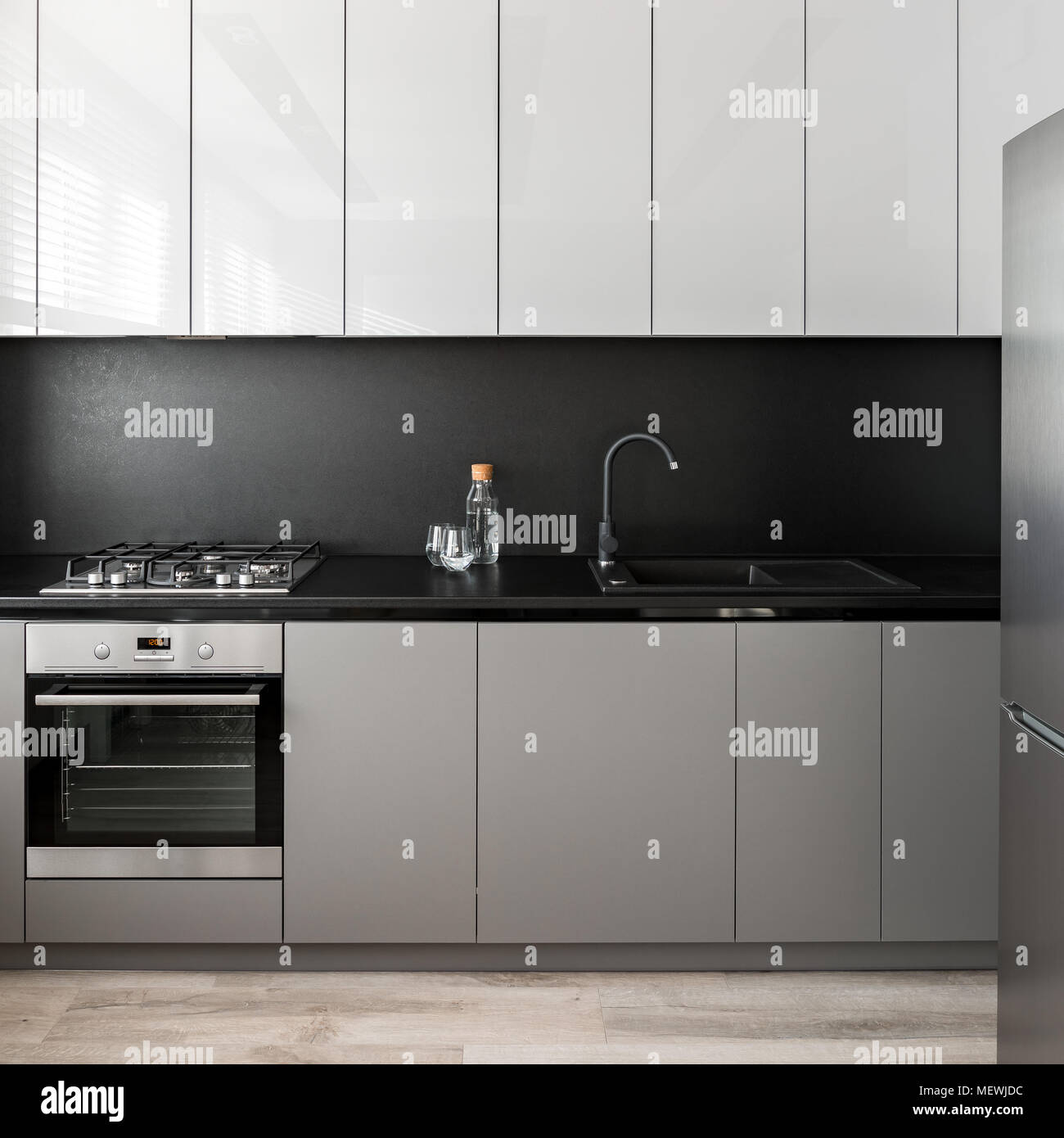 Kitchen Modern Kitchen Greyd White Cabinets W Black Backsplash