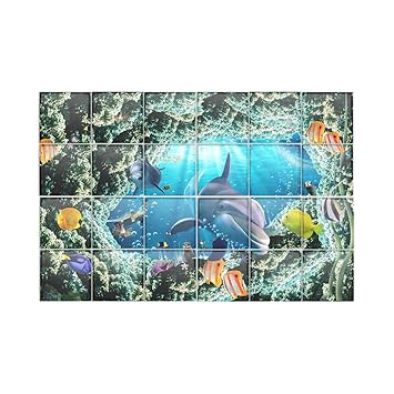 Nish Ocean Printed Picture Highlighter Glass Tile Mural