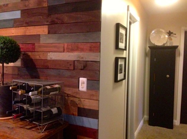 My wife and i picked up some free pallets and decided to do a little project. Diy pallet wall design is just what it says. Backsplash ideas pallet backsplash mosaic backsplash herringbone backsplash beadboard backsplash mirror backsplash granite backsplash pallet wood diy pallet kitchen backsplash made from recycled pallets kitchen backsplashes kitchen design pallet very easy to do i just cut the pallets with a skill saw then sanded both sides of the boards then used liquid nail to attach the boards to the.