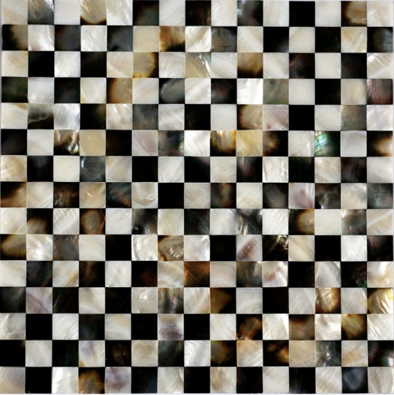 Blended Seashell Black Lip And Freshshell White Square Mosaic Etsy